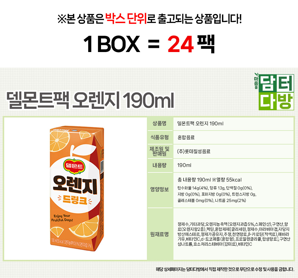 µ¨¸óÆ®ÆÑ ¿À·»Áö 190ml (24ÆÑ)