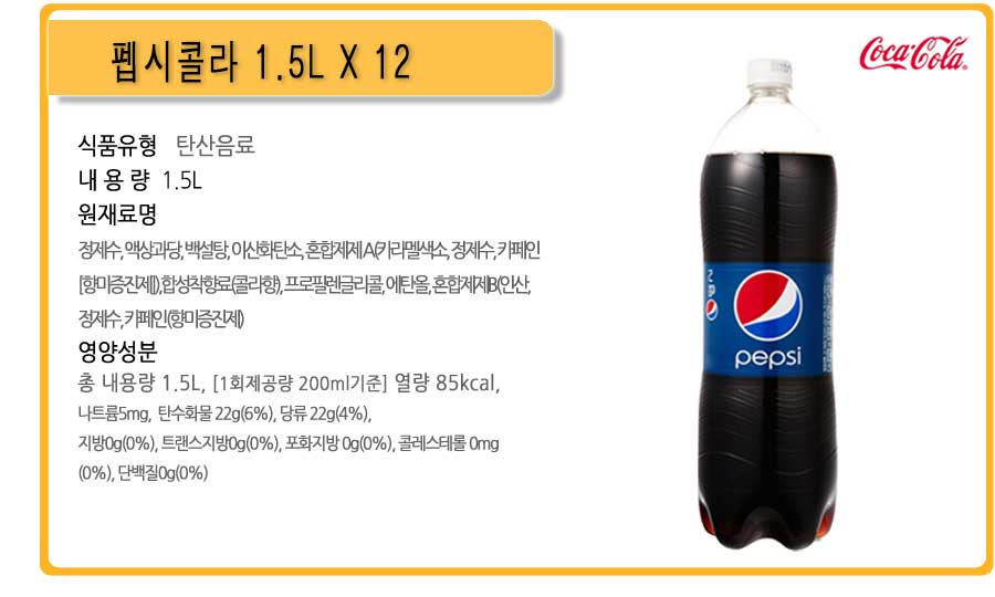 Æé½ÃÄݶó 1.5L 12°³ ĵÀ½·á ź»êÀ½·á