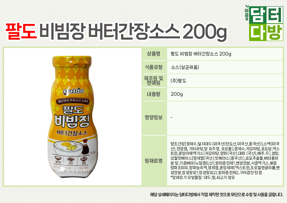ÆÈµµ ºñºöÀå ¹öÅͰ£Àå¼Ò½º 200g X 3°³