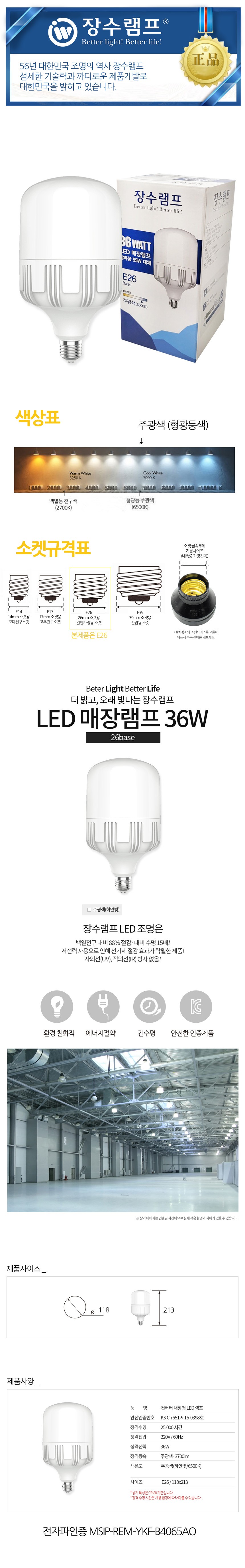 Àå¼ö LED º¼Àü±¸ ·¥ÇÁ °øÀåµî E26 36W ÁÖ±¤»ö Á¶¸í |