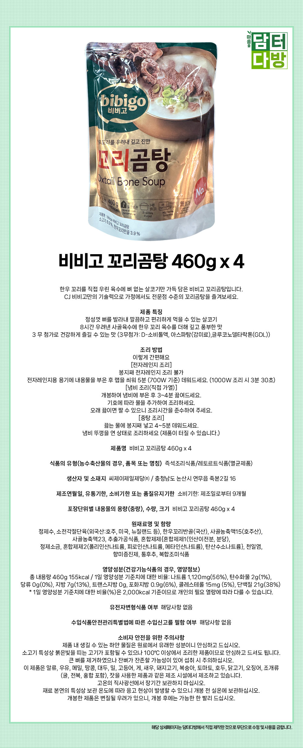 ºñºñ°í ²¿¸®°õÅÁ 460g x 4