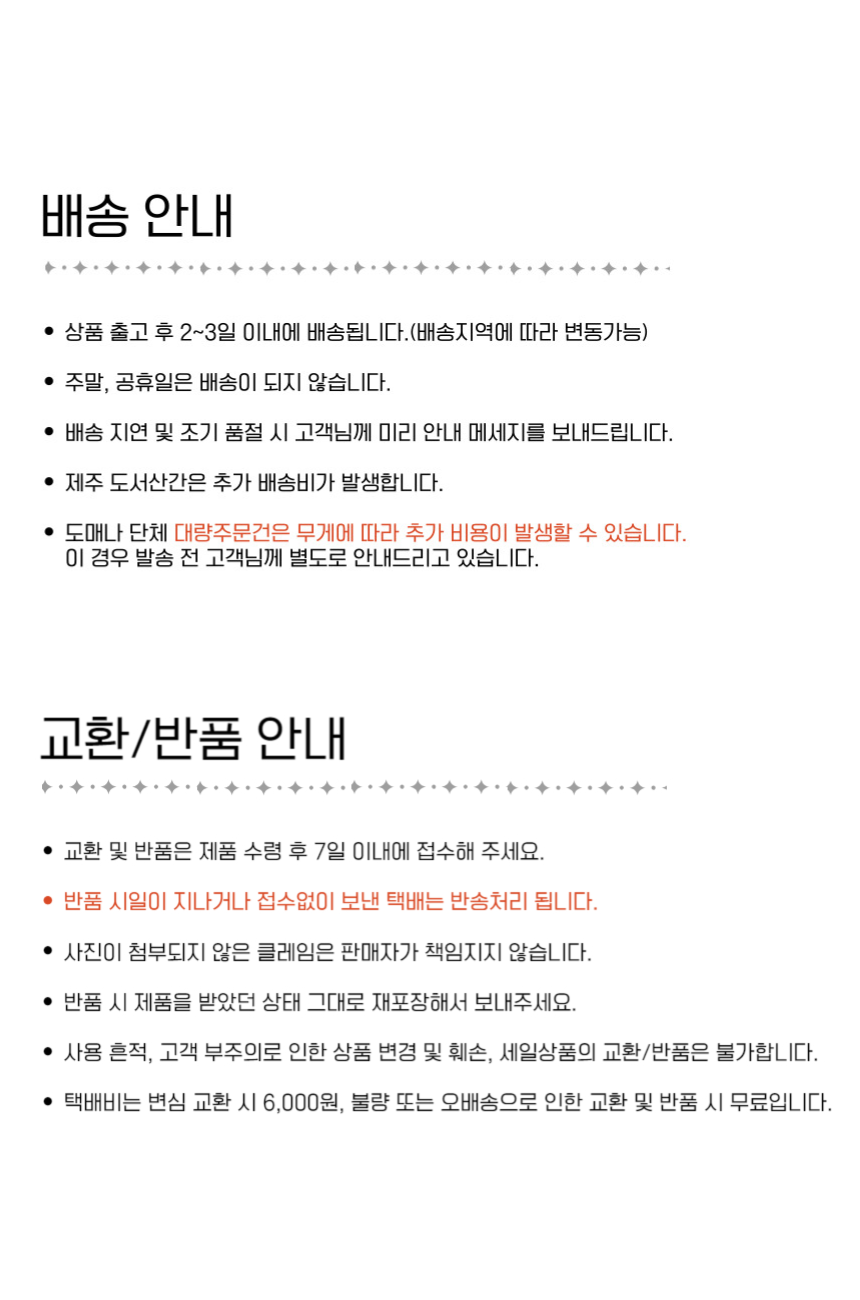 ¹è¼Ûºñ : ±âº»¹è¼Û·á´Â 2,500¿ø ÀÔ´Ï´Ù. (µµ¼,»ê°£,¿ÀÁö ÀϺÎÁö¿ªÀº ¹è¼Ûºñ°¡ Ãß°¡µÉ ¼ö ÀÖ½À´Ï´Ù) |