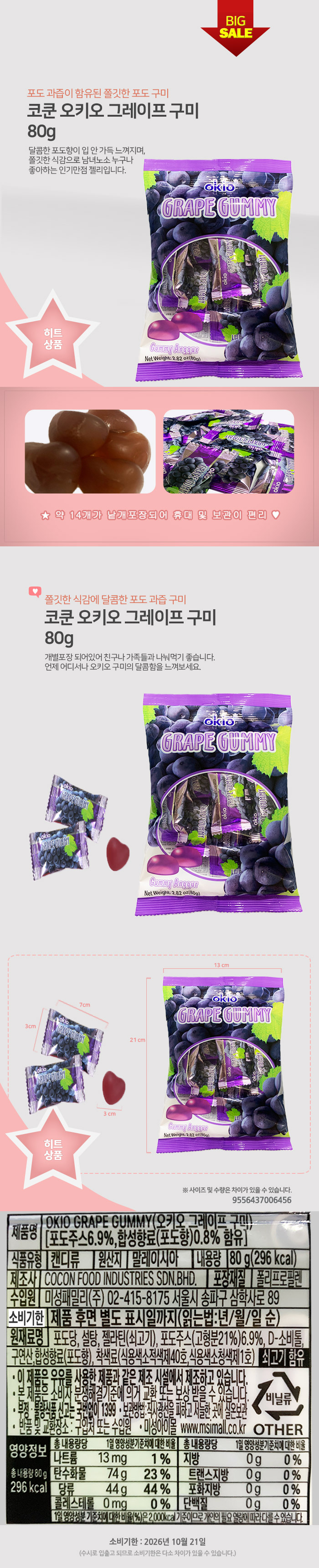 BBQ ¿ÀŰ¿À ±×·¹ÀÌÇÁ ±¸¹Ì Á©¸® 80g x 5ºÀ