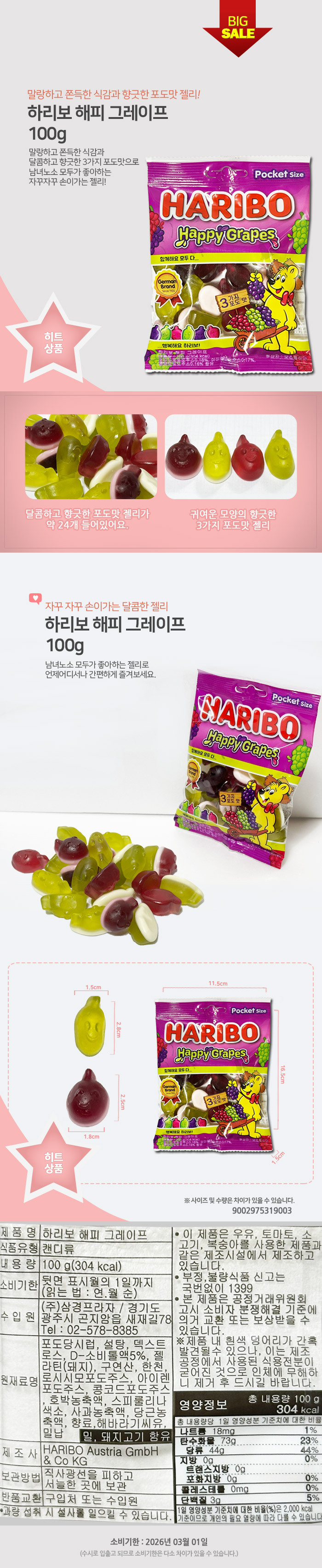Çϸ®º¸Á©¸® ÇØÇÇ ±×·¹ÀÌÇÁ ±¸¹Ì Æ÷µµ Á©¸® 100g x 3°³