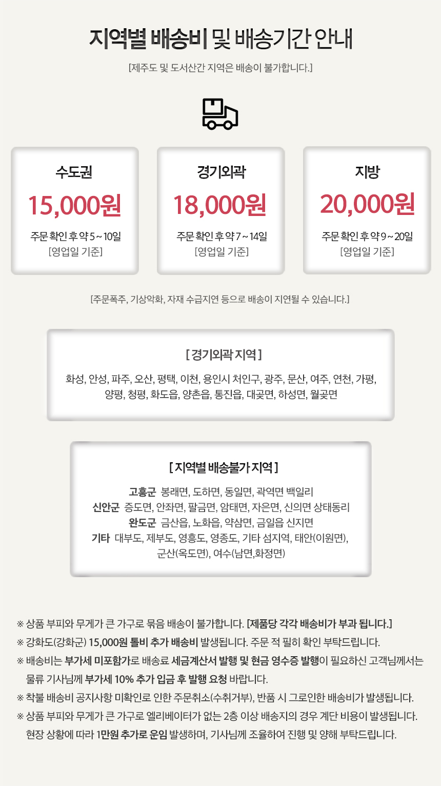 ¹è¼Ûºñ : ±âº»¹è¼Û·á´Â 2,500¿ø ÀÔ´Ï´Ù. (µµ¼,»ê°£,¿ÀÁö ÀϺÎÁö¿ªÀº ¹è¼Ûºñ°¡ Ãß°¡µÉ ¼ö ÀÖ½À´Ï´Ù) |