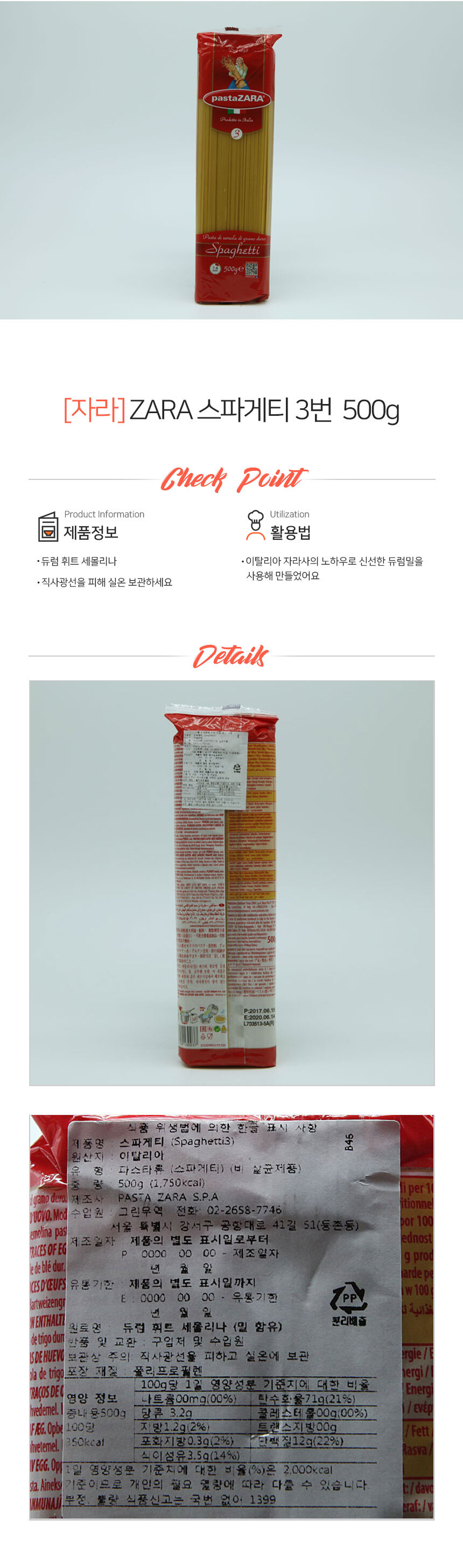 ÆÄ½ºÅ¸ ZARA 3¹ø 500g x 3°³ ÆÄ½ºÅ¸¸é ½ºÆÄ°ÔƼ¸é