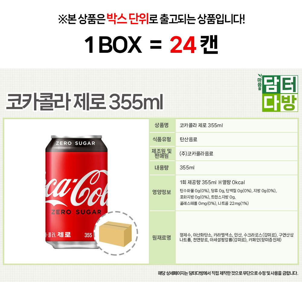 ÄÚÄ«Äݶó Á¦·Î 355ml x 24ĵ ¶×ĵ °¡Á¤¿ë ¾÷¼Ò¿ë