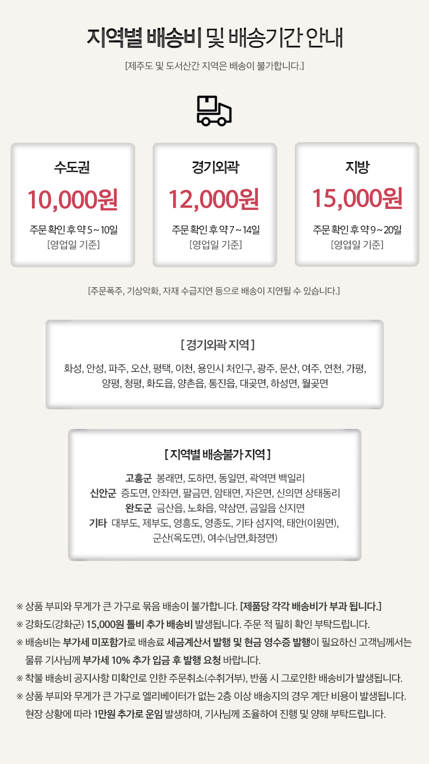 ¹è¼Ûºñ : ±âº»¹è¼Û·á´Â 2,500¿ø ÀÔ´Ï´Ù. (µµ¼,»ê°£,¿ÀÁö ÀϺÎÁö¿ªÀº ¹è¼Ûºñ°¡ Ãß°¡µÉ ¼ö ÀÖ½À´Ï´Ù) |