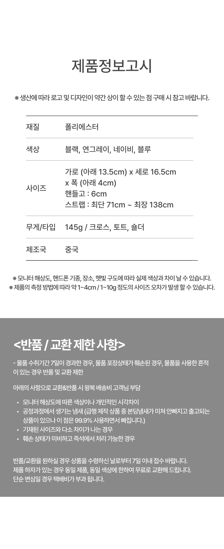 ½Å¹ßÀÇ °æ¿ì, ½Ç¿Ü¿¡¼ ÂøÈÇÏ¿´°Å³ª »ç¿ëÈçÀûÀÌ ÀÖ´Â °æ¿ì¿¡´Â ±³È¯/¹Ýǰ ±â°£³»¶óµµ ±³È¯ ¹× ¹ÝǰÀÌ ºÒ°¡´É ÇÕ´Ï´Ù. |