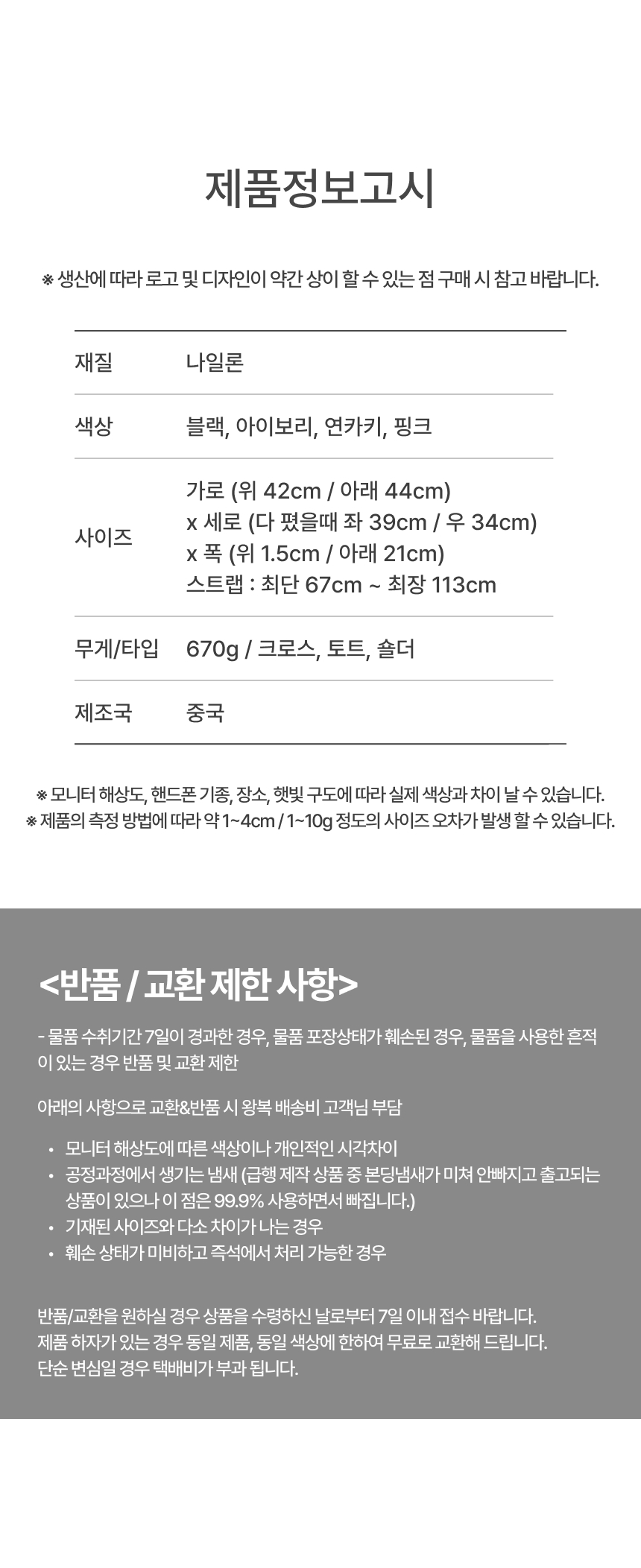 ½Å¹ßÀÇ °æ¿ì, ½Ç¿Ü¿¡¼ ÂøÈÇÏ¿´°Å³ª »ç¿ëÈçÀûÀÌ ÀÖ´Â °æ¿ì¿¡´Â ±³È¯/¹Ýǰ ±â°£³»¶óµµ ±³È¯ ¹× ¹ÝǰÀÌ ºÒ°¡´É ÇÕ´Ï´Ù. |