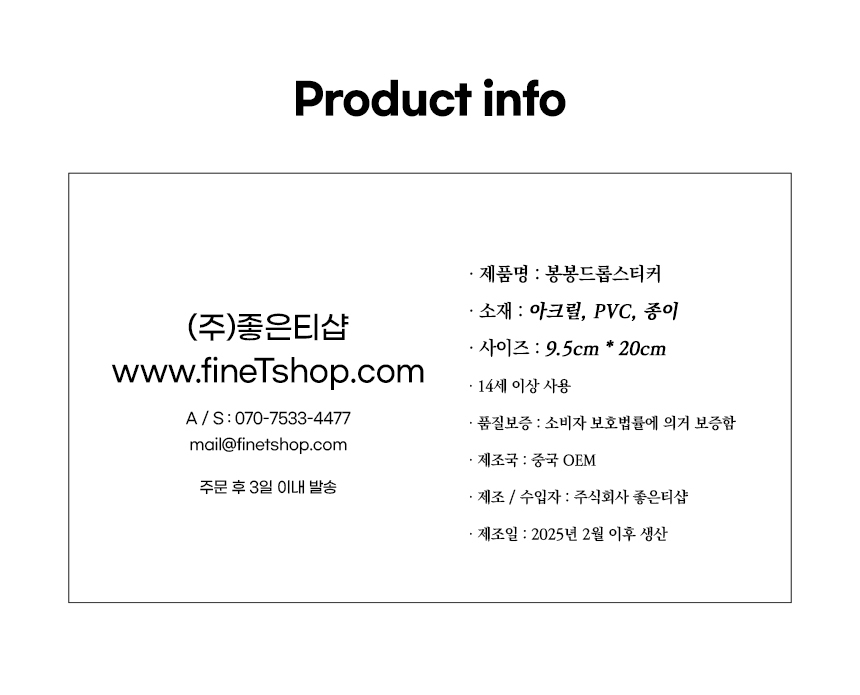 ¹è¼Ûºñ : ±âº»¹è¼Û·á´Â 2,500¿ø ÀÔ´Ï´Ù. (µµ¼,»ê°£,¿ÀÁö ÀϺÎÁö¿ªÀº ¹è¼Ûºñ°¡ Ãß°¡µÉ ¼ö ÀÖ½À´Ï´Ù) |