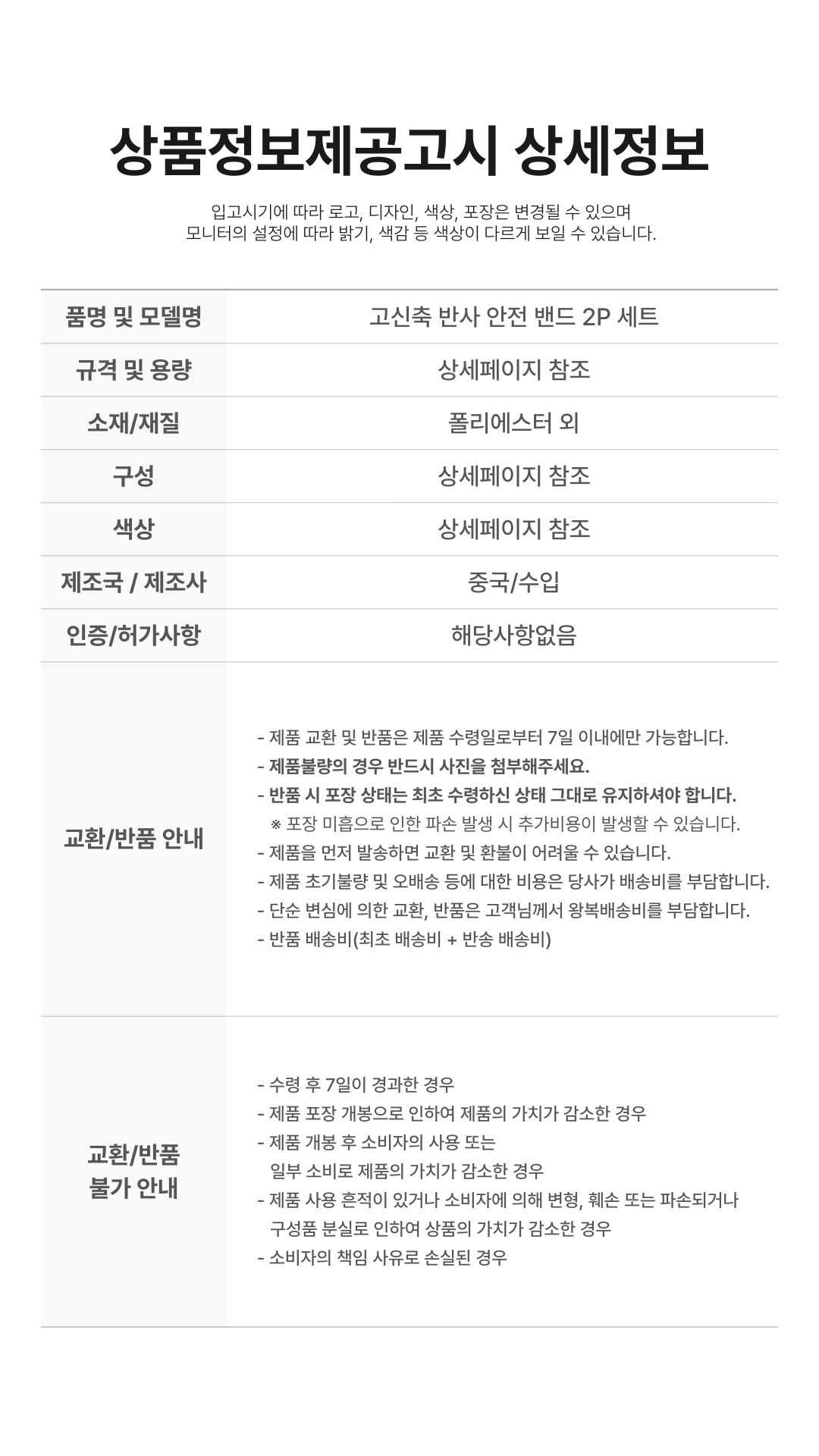 ¼öÁ¦È Áß °³º° ÁÖ¹®Á¦ÀÛ»óǰ(±Á³ôÀÌ,¹ßº¼,»çÀÌÁî º¯°æ)ÀÇ °æ¿ì¿¡´Â Á¦ÀÛ¿Ï·á, Àμö ÈÄ¿¡´Â ±³È¯/¹Ýǰ±â°£³»¶óµµ ±³È¯ ¹× ¹ÝǰÀÌ ºÒ°¡´É ÇÕ´Ï´Ù. |